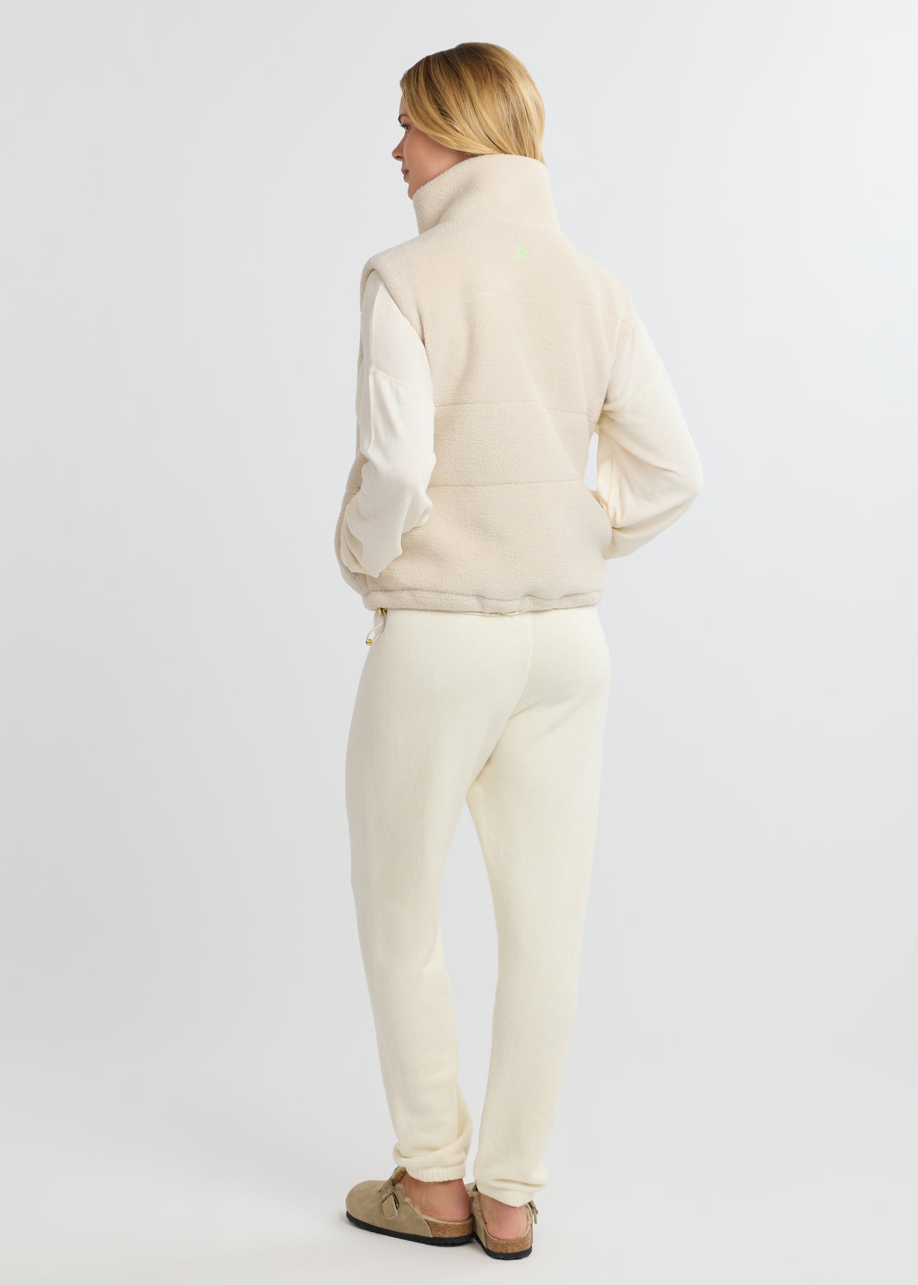 This vest melds Sherpa warmth and puffer-style structure for a layer that’s sporty yet polished—and ready for anything. With its cozy feel and cool, modern detailing, it’s that unexpected piece you didn’t know you needed.