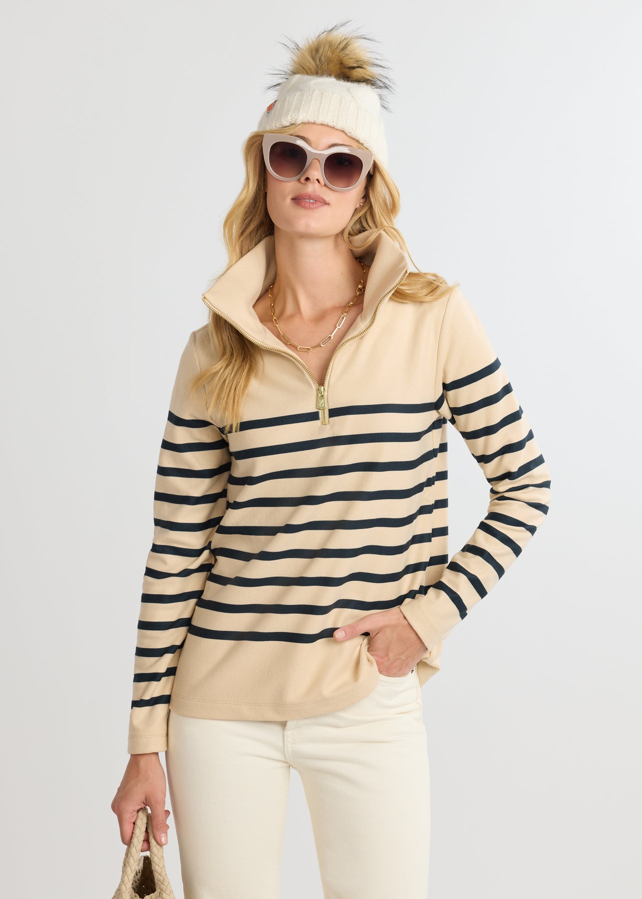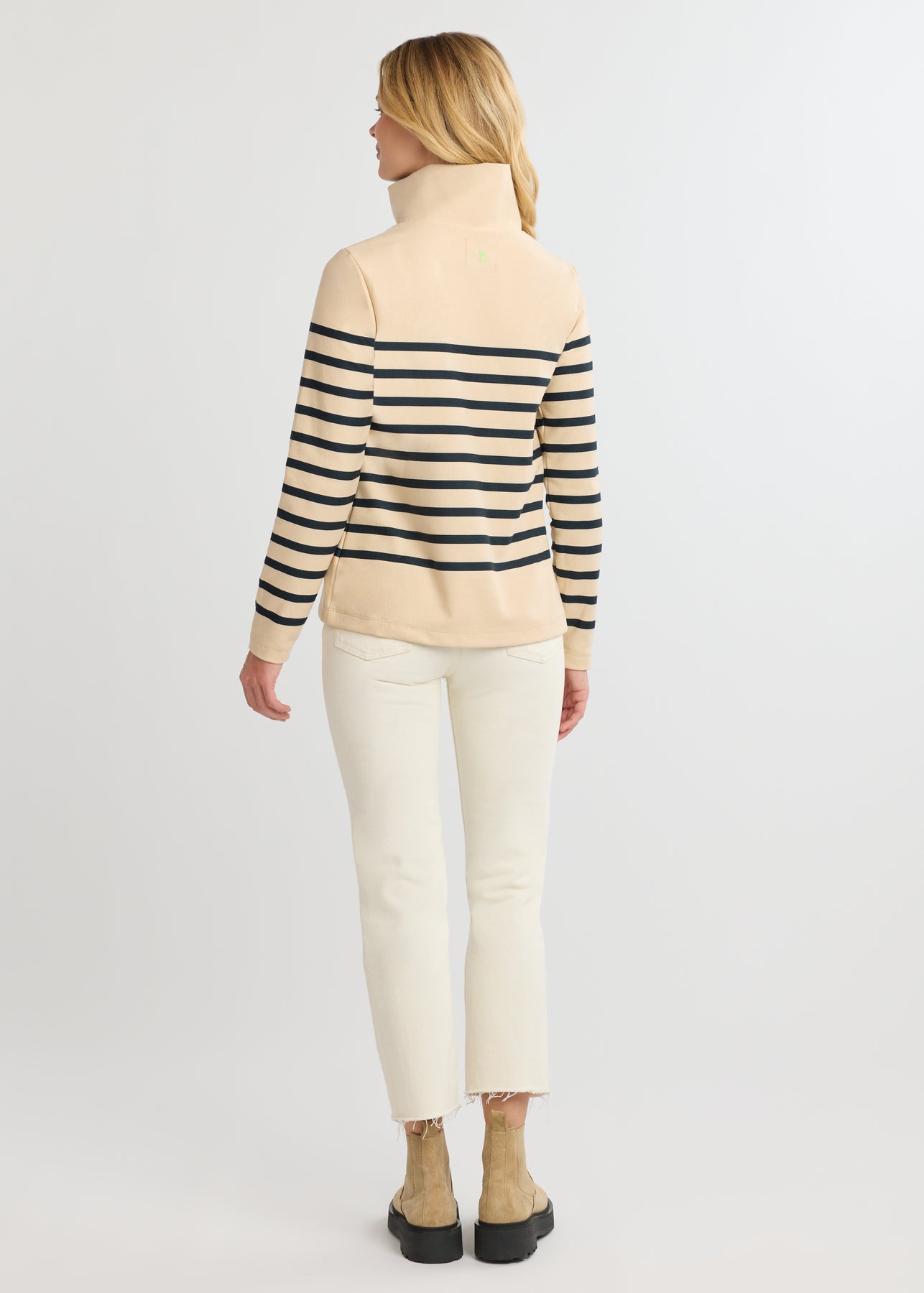 Greenpoint devotees, this one’s for you—now with an enhanced fit in our tried-and-true Terry Fleece with a navy placed stripe. With half-zip styling on our mid-length turtleneck, this everyday piece gets even more versatile.