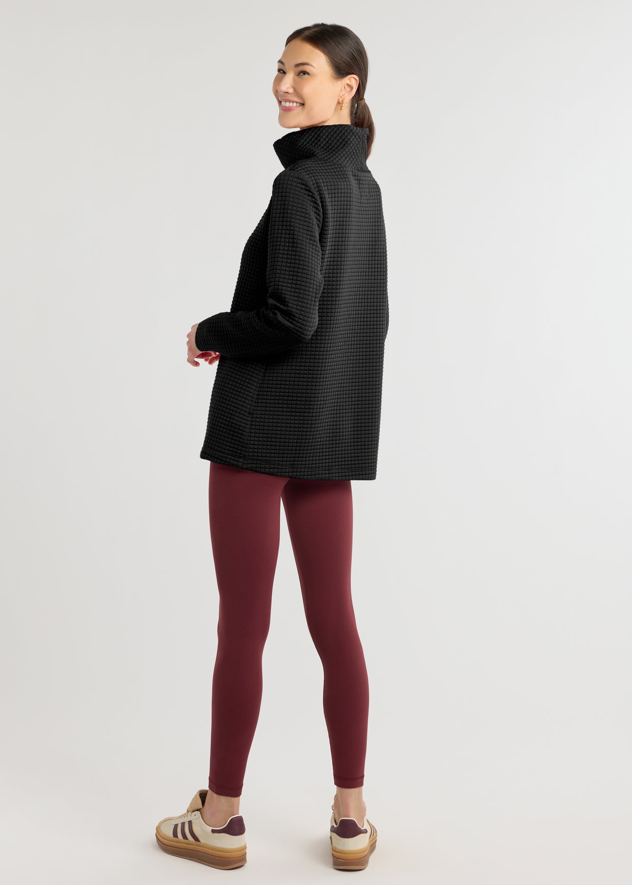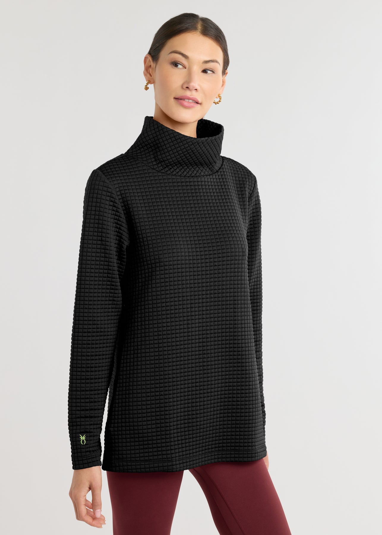 - Tunic-length turtleneck in recycled Waffle—soft and cozy with a bit of stretch