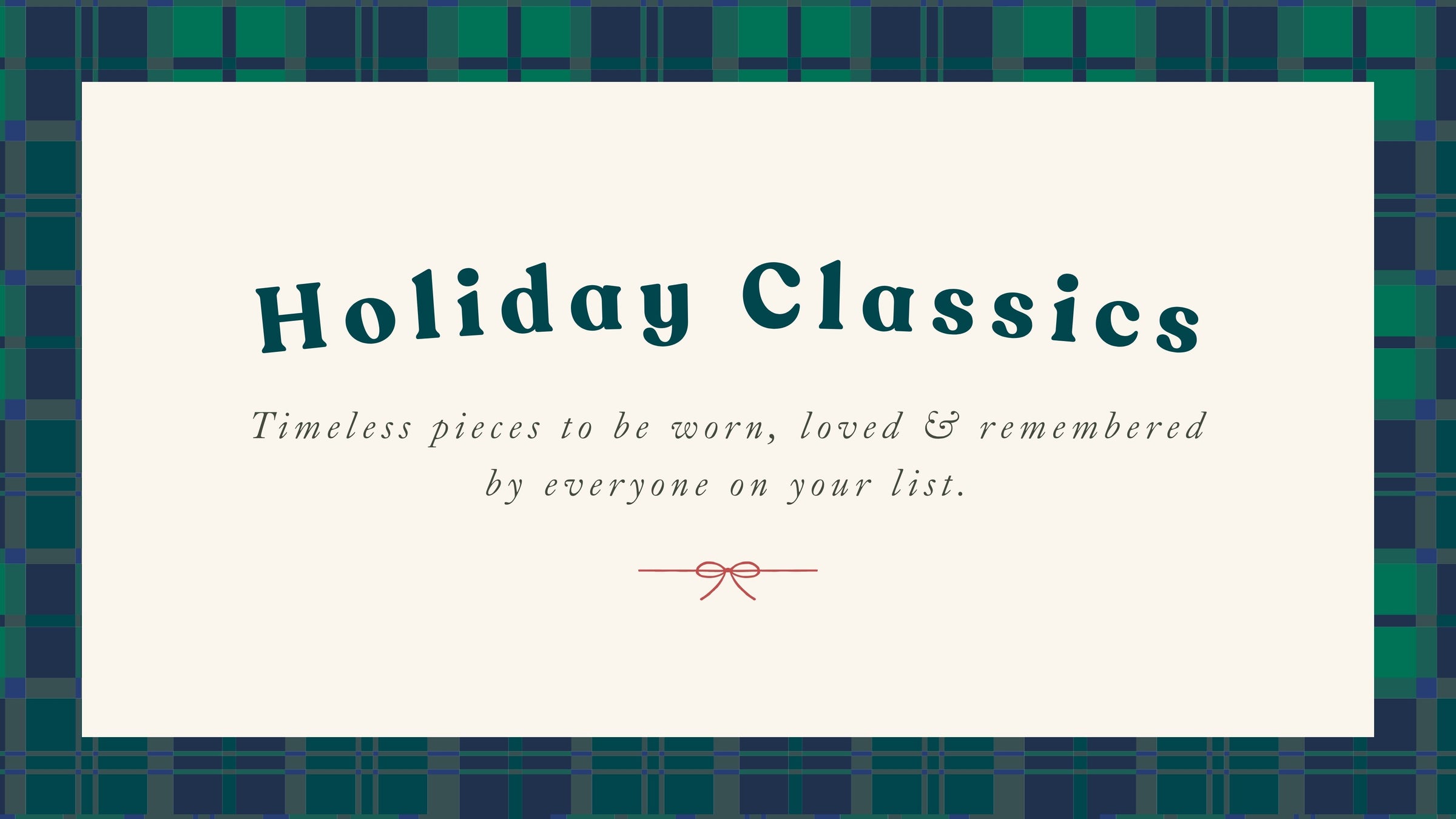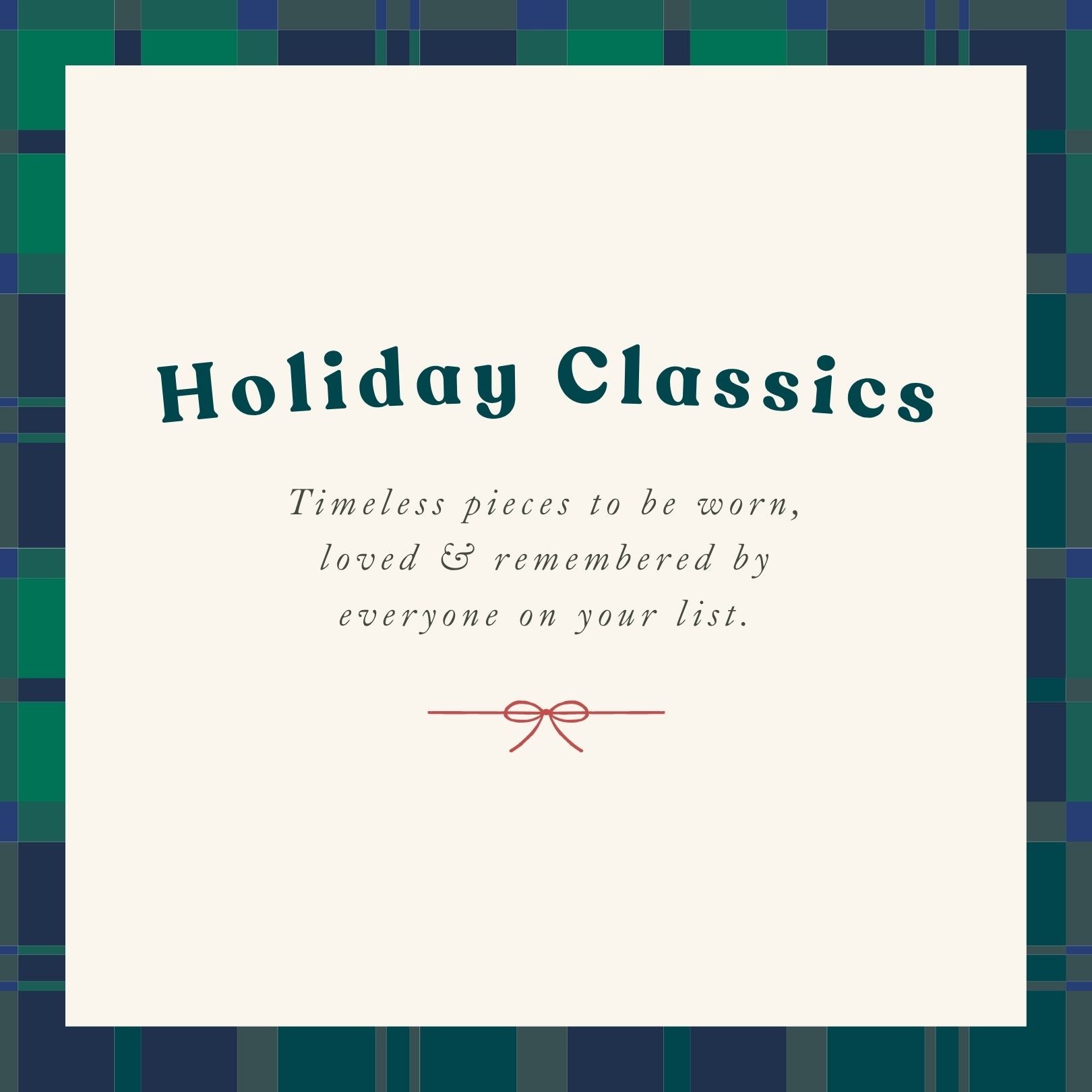 The holidays are built on tradition: hanging the same festive decorations, humming those familiar carols, replaying the same beloved movies. Our Holiday Classics gift guide celebrates that enduring spirit with timeless pieces to be worn, loved & remembered by everyone on your list. Because great style—like great traditions—only gets better with time.
