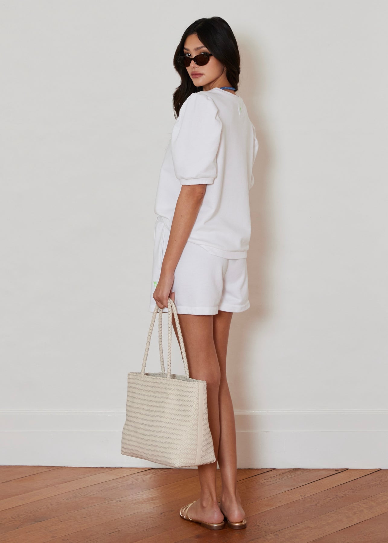 Put a little puff in your warm-weather wardrobe. The Cleo Top brings gathered sleeve detail to a relaxed French Terry crewneck that works with everything. Easy, comfortable, elevated.