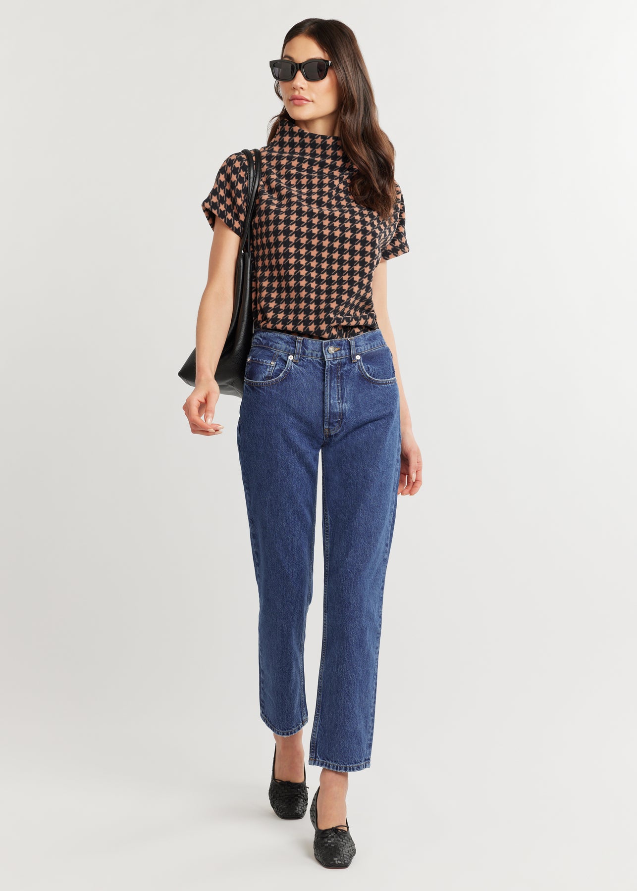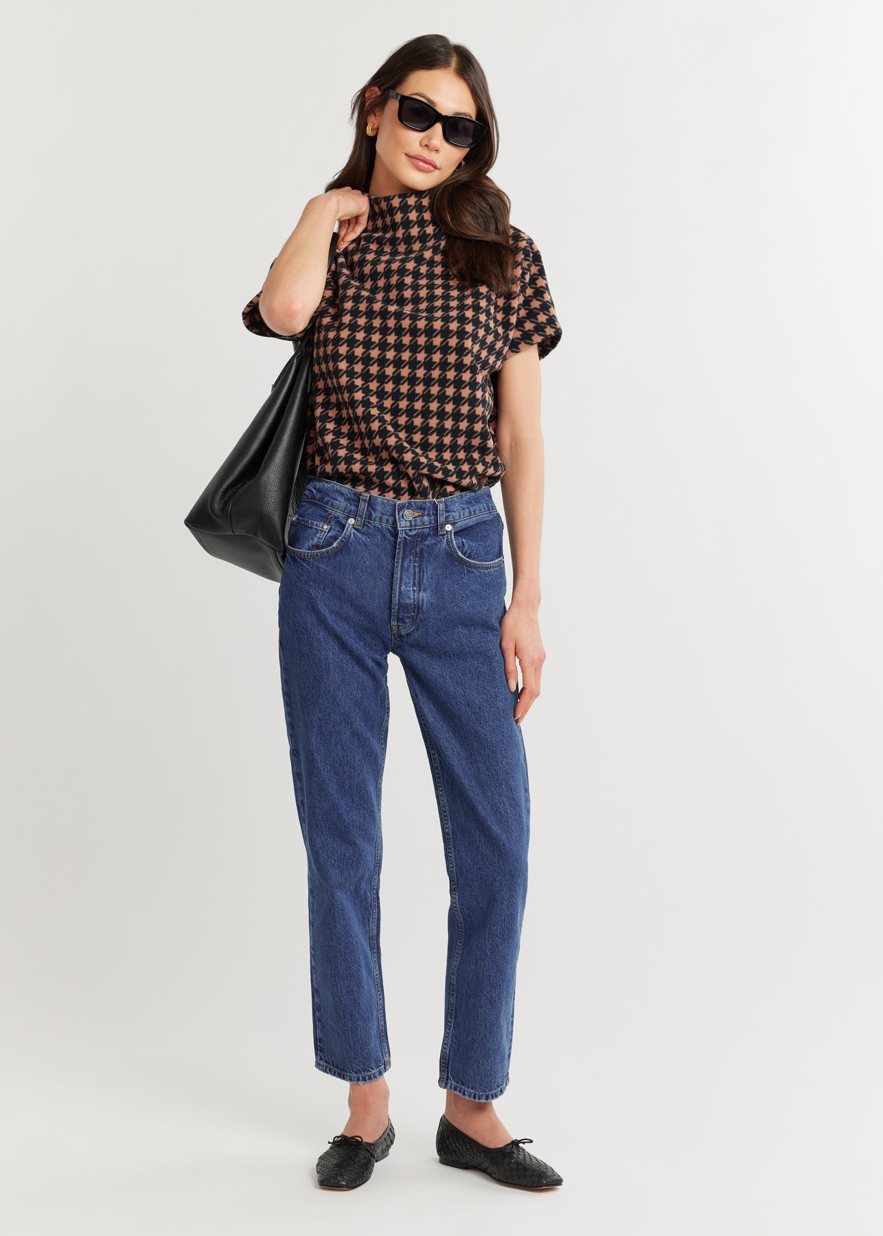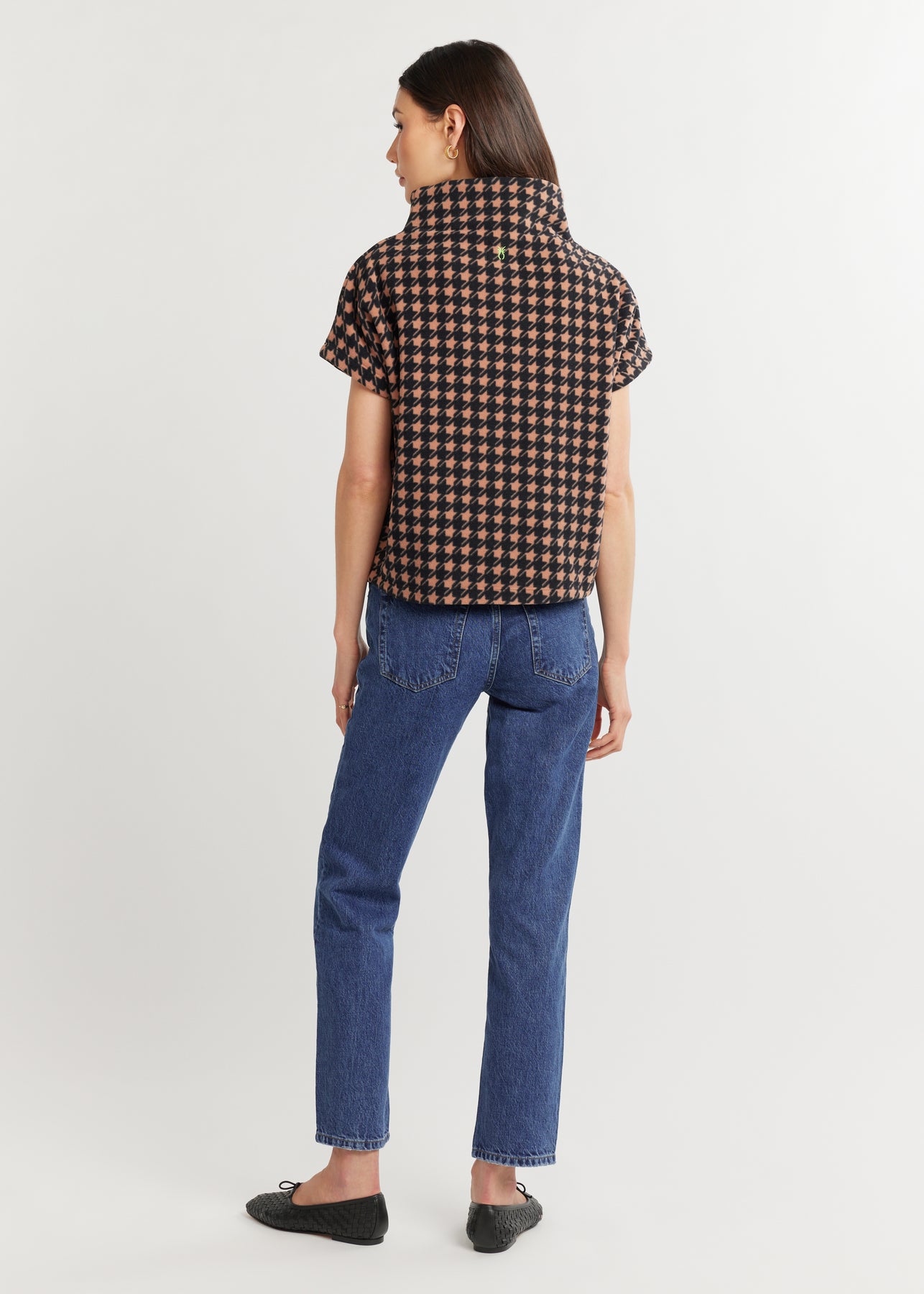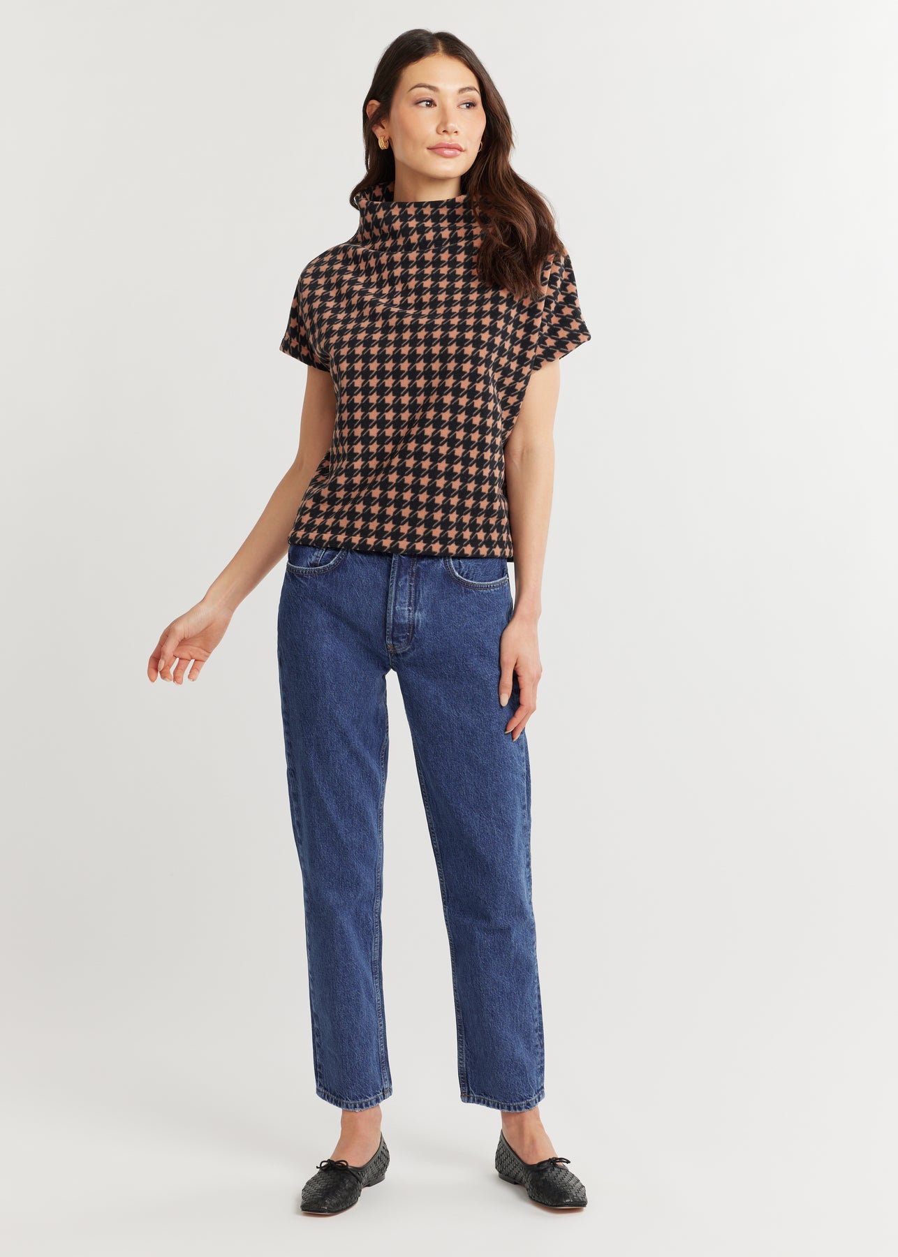 A statement collar for all seasons. We scaled back our signature stand-up neckline in a laid-back, short-sleeve style that gives dimension to transitional dressing.