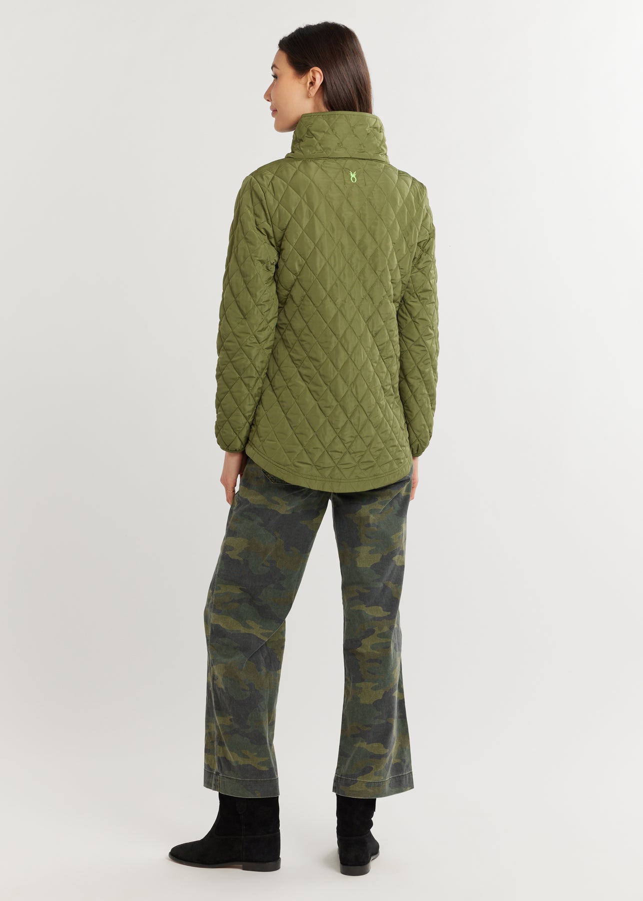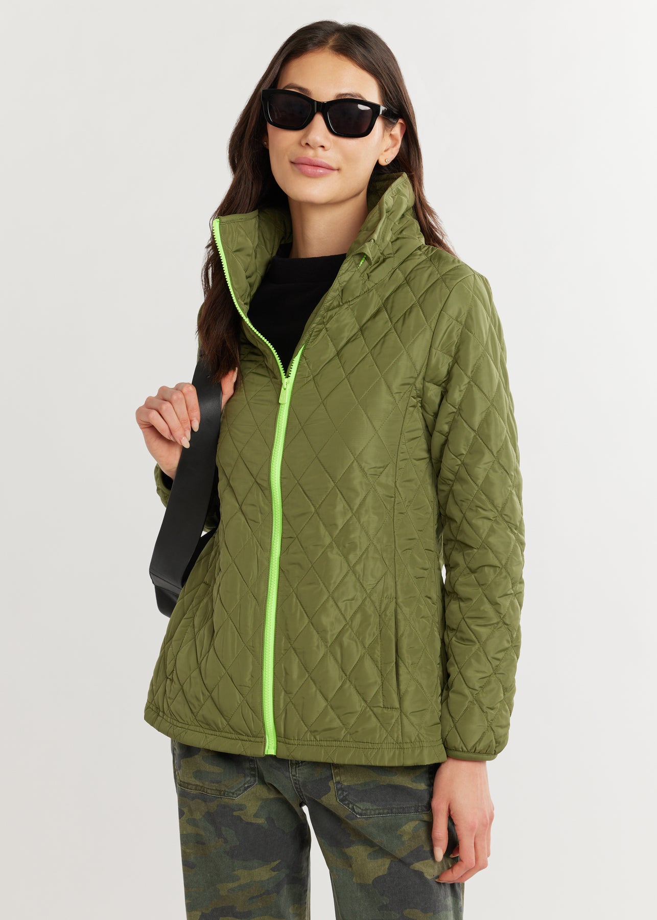 • Slim fit, long-length jacket in recycled Quilted Lustre with knit lining