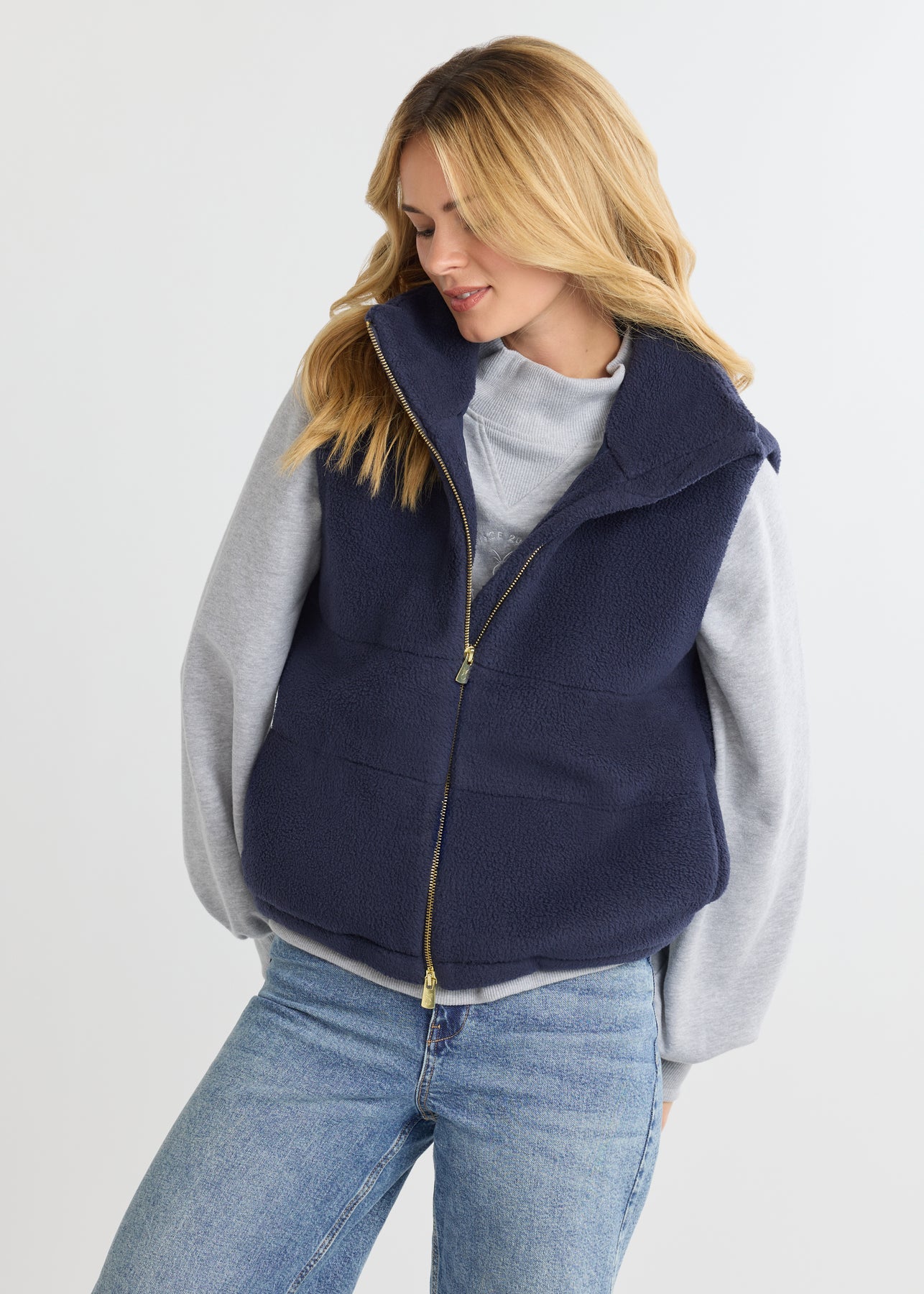 This vest melds Sherpa warmth and puffer-style structure for a layer that’s sporty yet polished—and ready for anything. With its cozy feel and cool, modern detailing, it’s that unexpected piece you didn’t know you needed.